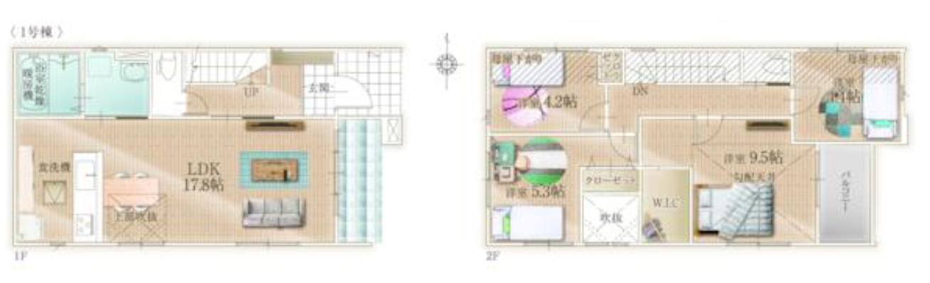| 設備 | 浴室暖房、浴室乾燥機、オートバス、追焚機能、シャワー付洗面化粧台、温水洗浄便座、トイレ2ヶ所 キッチン カウンターキッチン、システムキッチン、食器洗浄乾燥機、食器乾燥機、浄水器、3口以上コンロ、グリル 設備・サービス 全居室収納、ウォークインクローゼット、クローゼット、床下収納、モニター付インターホン、ディンプルキー、ダブルロックドア、シャッター雨戸、省エネ給湯器、全居室フローリング、上水道、下水道、都市ガス、電気、ダウンライト、火災警報器(報知機)、複層ガラス | ||
